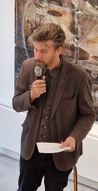 I går på pingstafton kl 14 var det vernissage på Dalslands Konstmuseum. Det visades egentligen tre olika utställningar. 30 av Dalslands Konstnärsförbunds medlemmar visade bilder på temat "NATUR" i nedervåningen. På övervåningen var det inget tema. Där visades i stora salen målningar av Lars Daniel Rehn och stora fantastiska skulpturer av Marta Runemark, (dotter till Roj Friberg, 1934-2016). I det lilla galleriet var det också skulpturer av ett annat slag, gjorda av Åsa Holmlund. Utställningarna pågår 3 juni - 23 juli 2017. Det var den nya museichefen, Jörgen Svensson, som öppnade utställningarna och lät deltagarna kortfattat berätta om sitt konstnärskap.